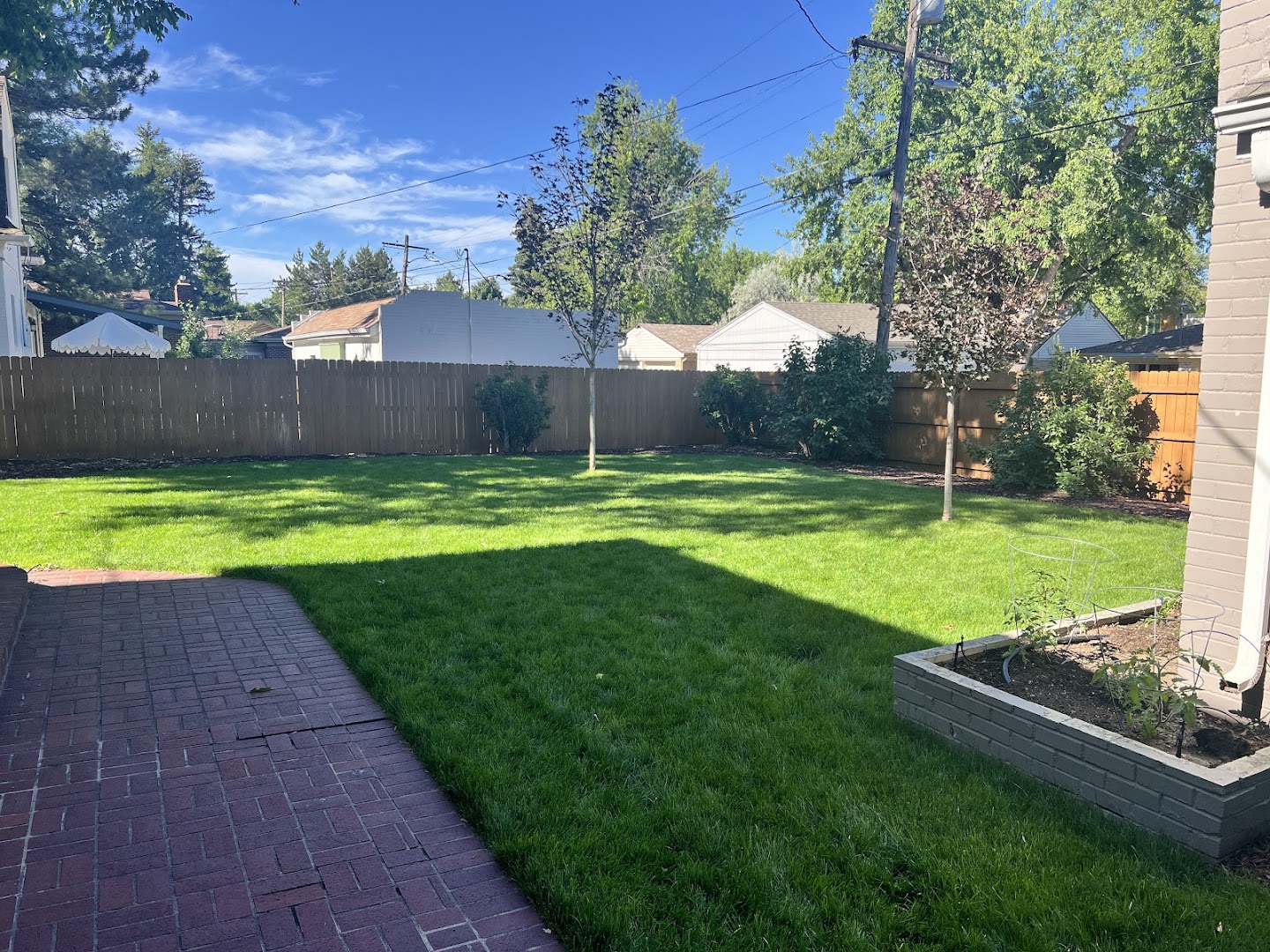 Brett and his wonderful crew completely transformed our backyard from a neglected and cramped space with minimal use into an oasis for relaxing, exercising, and gardening. Brett listened carefully to our priorities for the space, offered insight on issues we'd not considered, and then used his trained eye to create a beautiful and usable space that requires minimal water and upkeep, and is heavily enjoyed by the entire family (including the dogs). He essentially gave us a second living room that we use nearly every day for relaxing, entertaining, working, and exercising. The reddish flagstones lend a pleasant western feel to the space, and the grass (which beautifully tolerates Denver’s intense heat and aridity), coupled with the raised beds, bring a green vibrancy. I would recommend Harvester Landscapes in a heartbeat and I am so grateful that we hired them.