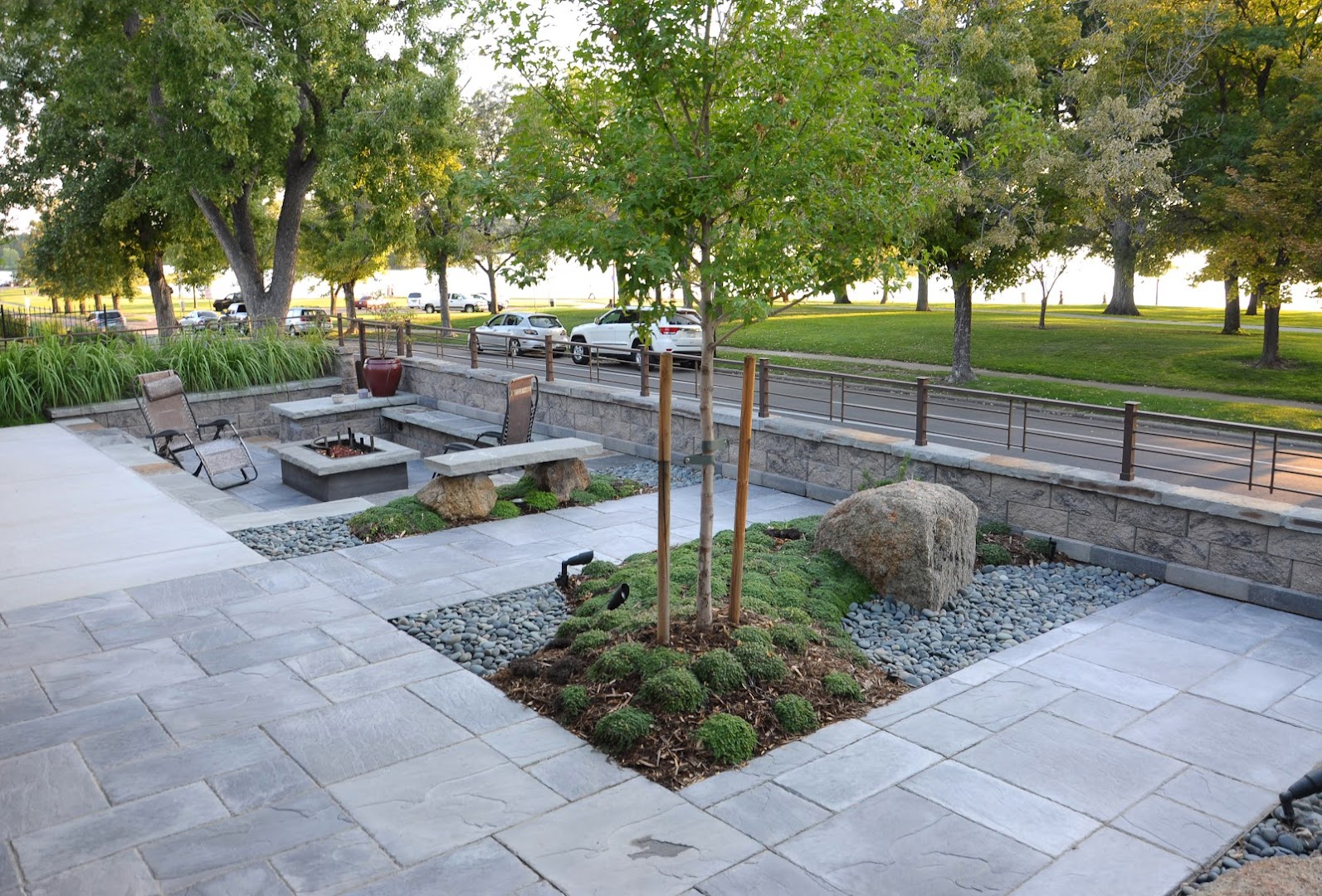 We hired Highlands Landscaping to replace an aging retaining wall and completely re-landscaped our front and side yard to reduce our overall water use and maintenance. They did an excellent job and we are elated with the results. The construction of the new block retaining wall was a massive and complex project as we live on the side of Green Mountain. We did not come to them with a specific plan in mind. However, they had the vision, knowledge and craftsmanship to create a terrace design that was not only elaborate and beautiful but incredibly functional. It is a work in progress as we elected to do this project in the fall, Highland will wait for spring to install the plants and shrubs which will really bring our yard to life. More pictures to follow in the spring. Their crew was so eager to please and took great pride in their workmanship. From the beginning, the team listened to our goals and desires and provided us with a very detailed estimate at the outset. The project evolved over time as we refined the design together. Throughout the entire project, they were very communicative and transparent with adjustments to the budget.